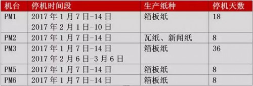 安徽馬鞍山基地:全部5臺紙機輪流停機,時長8-36天