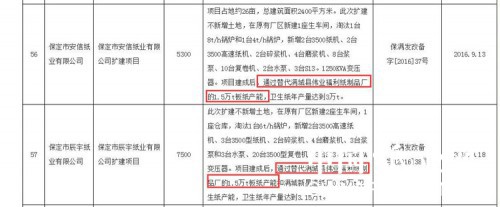 以環保部通報中河北保定的關停僵尸企業舉例。其中一家叫做滿城縣偉業福利紙制品廠。事實上,這家企業是“一魚兩吃”,占了兩條。一方面,它在應急減排名單中“復活”了;另一方面,實際上,該企業被淘汰的同時,已經有新的產能來了,下圖截取自河北省保定市發改委的網站: