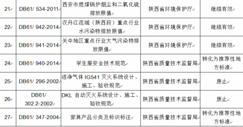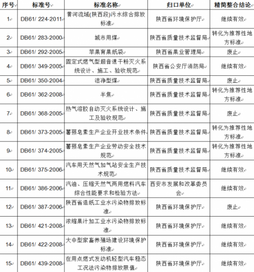 陜西省27項(xiàng)強(qiáng)制性地方標(biāo)準(zhǔn)整合精簡(jiǎn)結(jié)論匯總表
