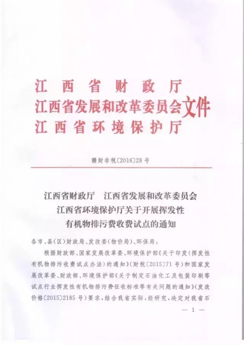 近日,繼北京市、上海市、江蘇省、安徽省、湖南省、四川省、天津市、遼寧省、浙江省、河北省、山東省、山西省、海南省、湖北省和福建省開征揮發性有機物VOCs排污費之后,江西省成為全國第十六個正式發布文件通知試點開征VOCs排污費的省級地區(含直轄市),從2016年11月1日起執行。其中,包裝印刷因為VOCs的絕對排放量比較高被列入重點污染行業。
