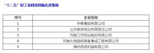 作為輕工行業中的重要支柱產業,制漿造紙行業在此次評選中也表現不俗。華泰集團有限公司、山東泉林紙業有限責任公司等五家企業獲先進集體稱號;華泰集團有限公司董事長李曉亮、河南江河紙業股份有限公司董事長兼總經理姜豐偉等七人獲先進個人稱號。詳細名單如下: