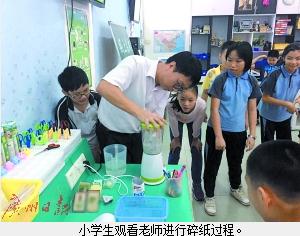 核心提示:近日在廣東順德西山小學科學實驗室,近50名小學生上了一堂生動有趣的造紙課:在老師的率領下,小學生們用舊紙張、廢棄的飲料軟包