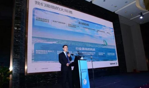 江蘇大明金屬制品有限公司總經理福井勤博士作了《不銹鋼材料在造紙設備中的應用探討》的演講。大明是全國制造業500強企業、國內領先的不銹鋼產品供應商,擁有豐富的選材和加工制造方案。自進入制漿造紙行業以來,已為維美德、APP、ABB安德里茨、福伊特、凱登、汶瑞、玖龍紙業、太陽紙業等多家國內外龍頭企業提供了制造解決方案,得到了行業的認可。福博士詳細介紹了大明為制漿造紙行業提供的從產品超市、工藝設計到加工制造、物流配送的一站式服務模式,而且所有的服務都有大明獨有的大數據平臺支撐,為制漿造紙行業企業實現節約制造成本、提升產品品質以及推進環保生產的目標起到了積極的推動作用。