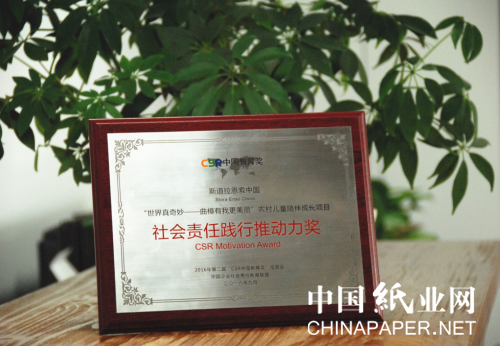 助力中國教育,影響中國未來。由團中央學校部、教育部、工信部聯合發起的2016年第二屆“CSR中國教育獎”評選結果于2016年9月27日公布,斯道拉恩索借“世界真奇妙——曲樟有我更美麗”農村兒童陪伴成長項目榮獲“社會責任踐行推動力獎”。