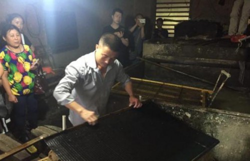 這家僅存的貢紙制作工坊位于湖南瀏陽(yáng)市張坊鎮(zhèn)。29日,50余位湘籍書(shū)畫(huà)家、非遺專家組成瀏陽(yáng)古山貢紙先遣隊(duì),來(lái)工坊找尋讓古藝煥新之法。