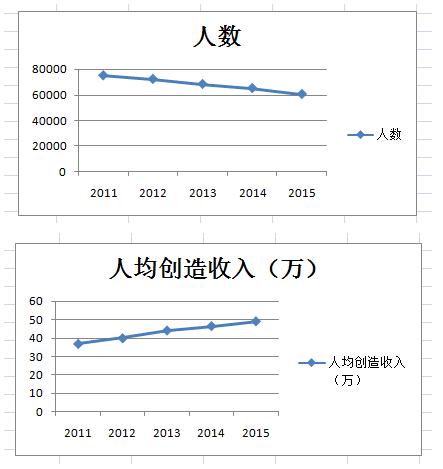 從業人員數持續減少,2015年年末從業人員為60399,相較2014年減少了4623人,減少比例為7.1%。如果和2011年近五年人員數量 最高的年份相比,從業人員數量足足減少了14518,比例為19.4%。愿意從事印刷業的人越來越少,招工難,人員流動性大是困擾產業發展的重大問題,需 得到廣泛的重視。但通過數據分析發現,2015年人均創造收入為49萬,為過去五年的新高。在勞動力成本越來越高、設備自動化生產效率越來越高的情況下, 人均創造收入仍有更大的提高的空間,改善企業內部的生產效率、管理水平,用精干的人員創造更高的收入是未來的主要發展方向。
