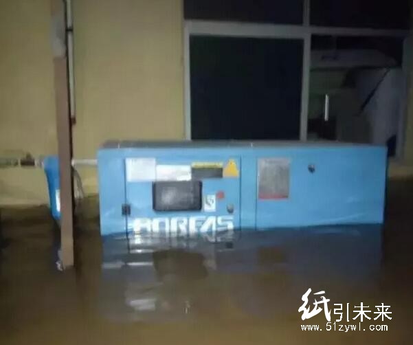 據王先生介紹,下午2點左右,廠區東側挨著污水河(水徑水河)的河水沖入廠區內,不到兩分鐘,巨大的洪水幾乎把一樓廠房淹沒,一些來不及逃走的員工爬上來二樓,還有人只能站在機器上躲過迅猛的洪水。據其估算,被困人員大概接近50人,財產損失超過百萬。