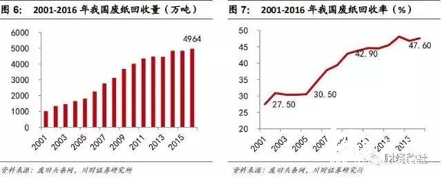 國廢回收率和回收質量逐步提升,對外廢依賴度有所降低。以往國內廢紙原料的品質較低、規模較小,我國廢紙的循環再利用程度與西方發達國家相比水平較低,無法滿足下游造紙生產企業的要求。但近年來國廢回收率和品質逐步提升,根據測算,2016 年我國廢紙回收率約為 50%。全球來看,歐洲廢紙回收率平均水平已達到 70%以上,日本廢紙回收率達 80%。與其他國家相比,我國廢紙回收率仍有一定提升空間。