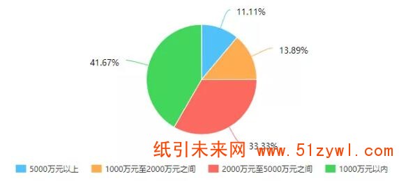 1、年產(chǎn)值。受訪企業(yè)2018年年產(chǎn)值1000萬元以內(nèi)的14家,1000萬元至2000萬元之間5家,2000萬元至5000萬元之間12家,5000萬元以上4家,占比如下:
