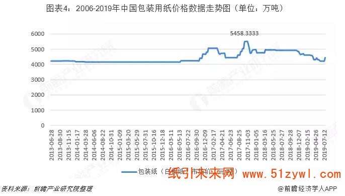 從2013年到2019年整體維持平穩(wěn),但是在2016年底和2017年初出現(xiàn)了價(jià)格暴漲的局面,由此導(dǎo)致整個(gè)下游的包材成本上升,這一點(diǎn)可以在2017年的消費(fèi)品公司成本得到驗(yàn)證,但是隨后2018年-2019年,包裝紙的價(jià)格出現(xiàn)了下跌。大致與2013-2014年的價(jià)格相仿。