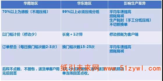 附表:華南地區與華東地區瓦楞紙板市場銷售模式差異對生產效率與效益比較