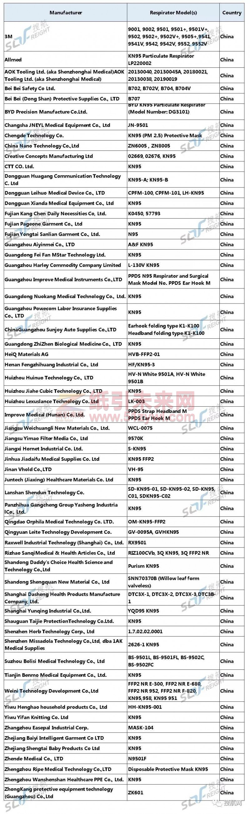 近期,FDA(食品藥品監督管理局)緊急授權中國多家廠商生產KN95口罩。獲FDA緊急使用授權的廠商名單如下: