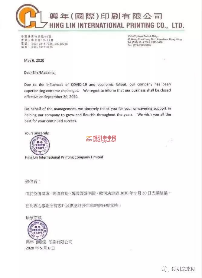 興年印刷宣布結(jié)業(yè)的日期在4月30號的五一長假前,面對蒿目時艱的當(dāng)下,和眾多老牌港企一樣,興年并不認(rèn)為危機(jī)會帶來新的機(jī)遇,而是選擇了結(jié)業(yè)。