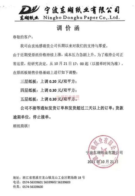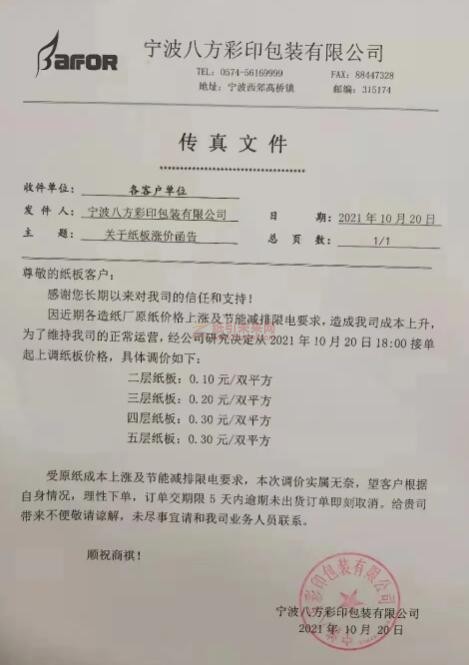 和前幾輪不一樣的是,本輪漲價部分紙板廠采取了限制訂單數(shù)量的做法,普遍以工廠8月-9月的日均下單數(shù)為最大下單額。此外,即使同一地區(qū),紙板廠的漲價步伐也開始出現(xiàn)分化。
