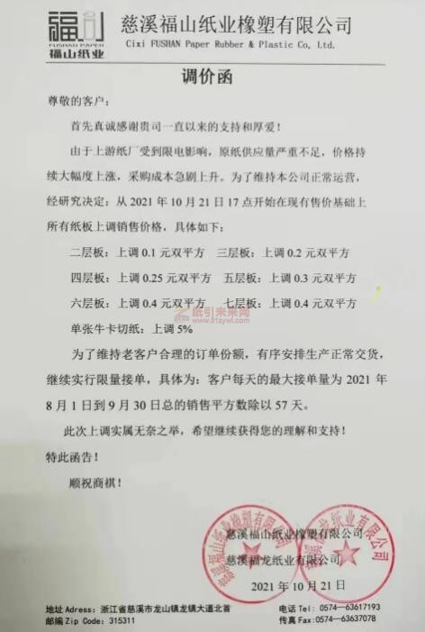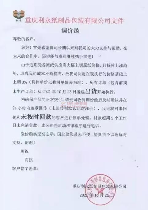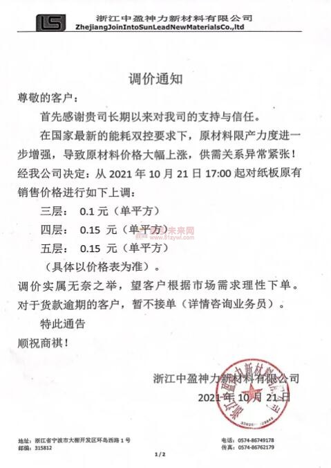 10月21日,山鷹發(fā)布漲價函,各基地全系列漲價100元/噸。