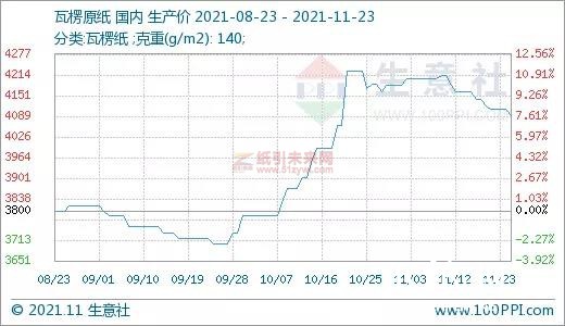 分析:周初瓦楞紙價格仍處下行走勢,山鷹、玖龍、理文等紙業巨頭逐漸放棄高位紙價的想法,選擇讓利于客戶。再加之煤炭價格下調,生產成本也隨之回調。目前市場氛圍比較冷淡,需求過低,導致原紙廠家庫存逐漸上升,因此瓦楞紙價格下調,提升出貨量。
