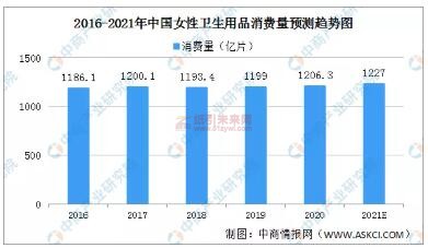 近幾年,我國(guó)女性衛(wèi)生用品消費(fèi)量呈現(xiàn)穩(wěn)步增長(zhǎng)的趨勢(shì),2016年女性衛(wèi)生用品消費(fèi)量1186.1億片,2019年增至1199億片,預(yù)計(jì)2021年達(dá)到1227億片。