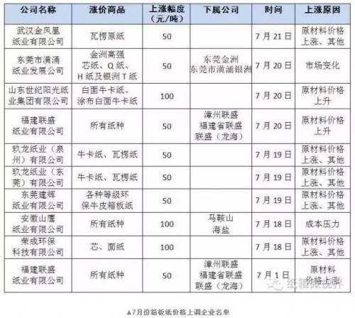 8家企業3天提升箱板紙價格50-100元,福建聯盛一月2次上調