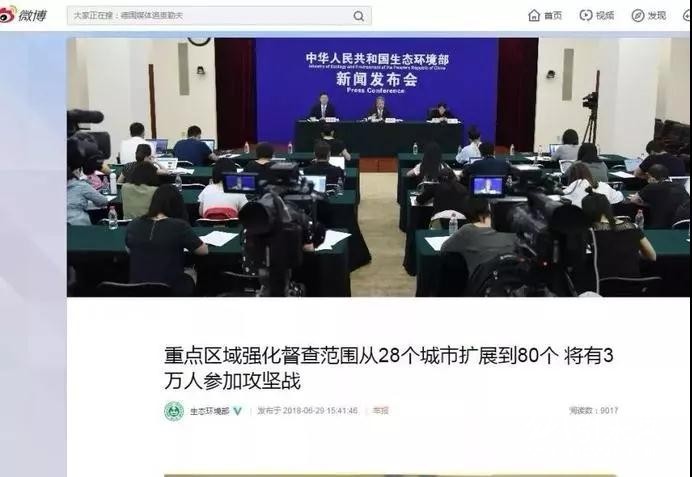 環(huán)境部舉行新聞發(fā)布會(huì),宣布重點(diǎn)區(qū)域強(qiáng)化督查范圍從28個(gè)城市擴(kuò)展到80個(gè),將有3萬人參加攻堅(jiān)戰(zhàn)。